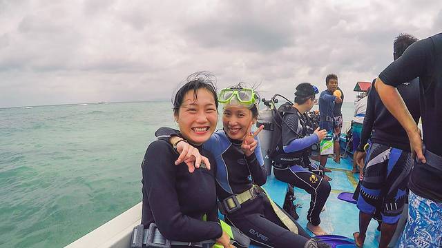 潜水40分钟上岸,上岸后才发现同行的2个LOW货男怕水,还没开始潜下去就抱着柱子喊救命~早早的上船等待我们。