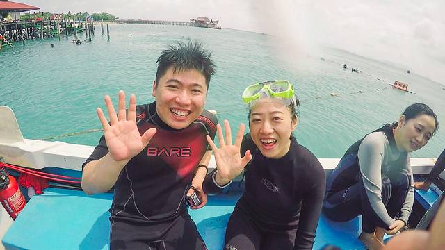 午餐小息后,出发卡帕莱水上屋附近浮潜,不过只能浮潜~不准上屋的。卡帕莱水上屋是私人所有,只要不是上面的住客其他是都不准上去的。