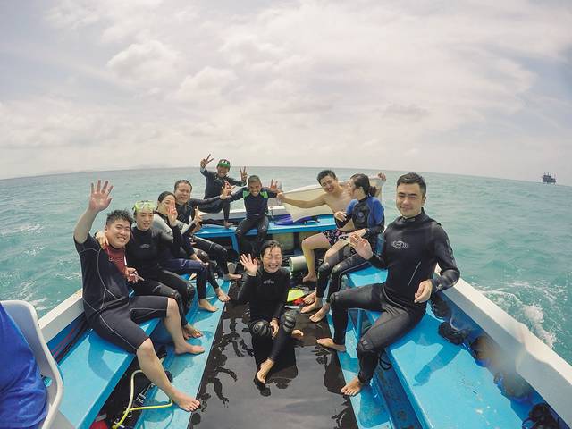 大集合,回马布岛吃午餐了。从水底上来的小伙伴各种兴奋~一直交流着潜水时的趣事,我的闺蜜说她看了17分钟的海龟。而我全程和某货在水底下手拉手,兴奋的时候我使劲掐他,因为没办法说话只有用行动告诉他,我超级兴奋啊!