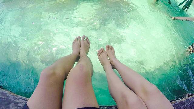 和某人把脚泡进海水里,啃着西瓜~清澈见底海水能看见小鱼儿游来游去~很享受这一刻的时光。