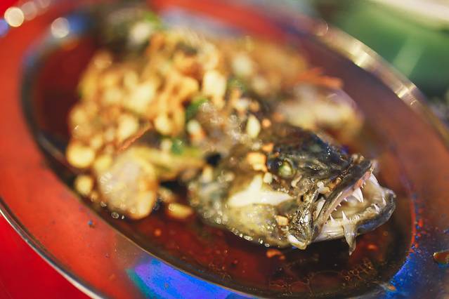 选了一条凶神恶煞的鱼,清蒸的味道很错,只是这脑袋有点渗人!