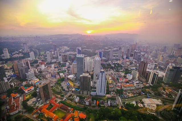 吉隆坡塔没有想象中好,因为之前去过首尔塔所以……此处省略一万字吐槽。呆到日落后选择回双子塔附近吃晚餐。