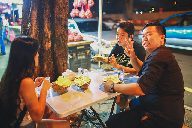 吉隆坡的最后一站,带我完成小小的目标~吃一次当地的榴莲大排档,为此阿ben还叫出他的好兄弟,说是一个榴莲高手帮我们挑选。不可否认挑的榴莲都很香甜,核也小。我们四个人干掉2个榴莲。