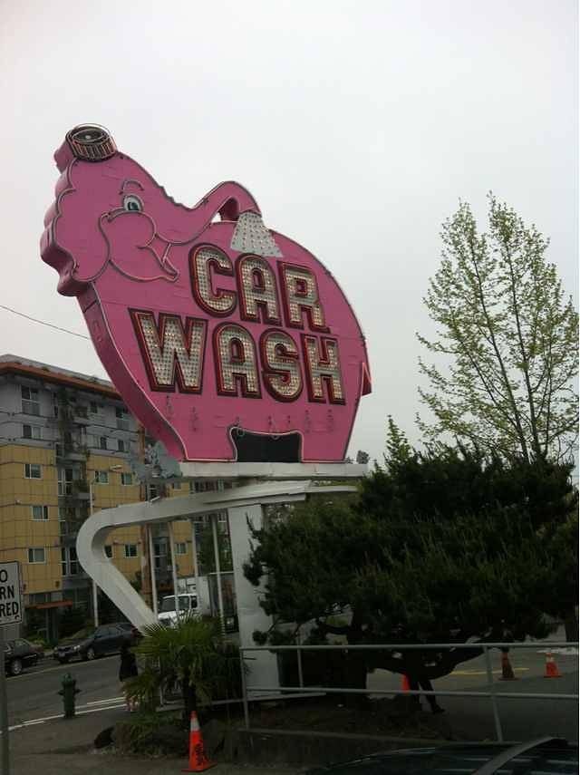在步行去比赛场地钥匙球馆的路上,偶遇美国第一家自动洗车店. 赶紧给饼哥介绍