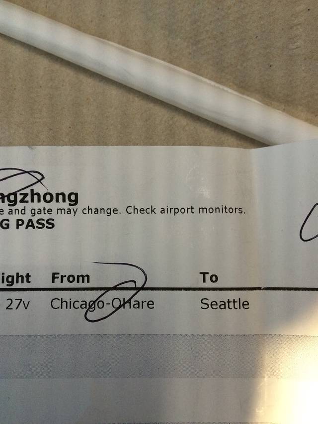 我们从芝加哥机场出发去西雅图,因为饼哥还要上课的关系,已经错过了3天的比赛,所以等饼哥一考完试,我们就搭乘第二天凌晨的飞机出发。