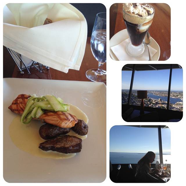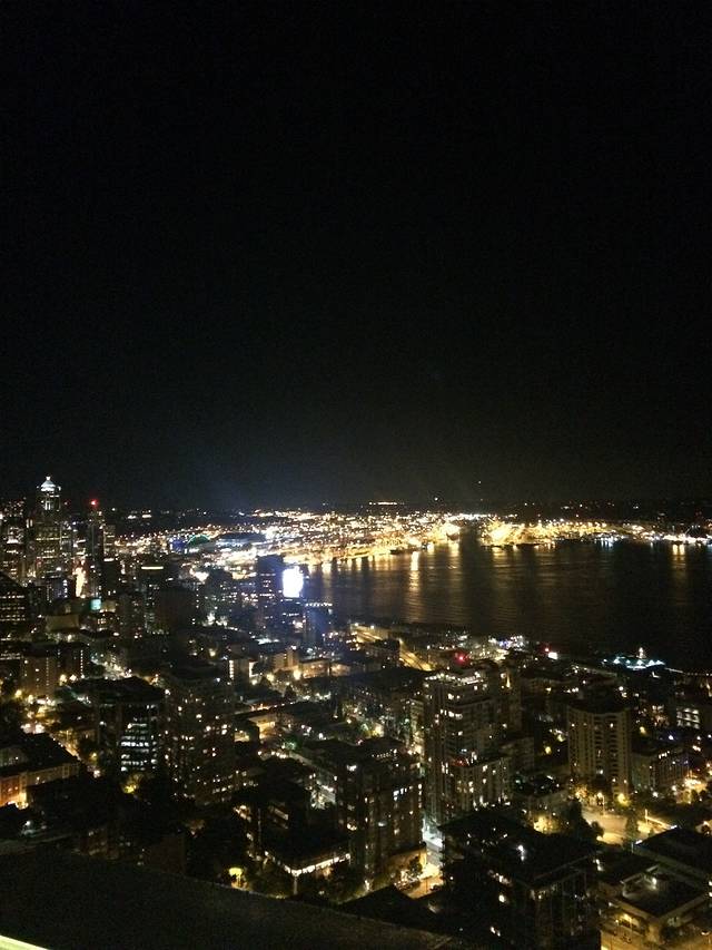 本来有打算去西雅图的地标建筑物太空针塔顶楼的旋转餐厅吃一顿,但是因为种种原因,这个计划被取消了。我已经去吃过一次了,所以还好,但是饼哥就没口福了哈哈。放上第一次去吃的照片 风景是真的不错.