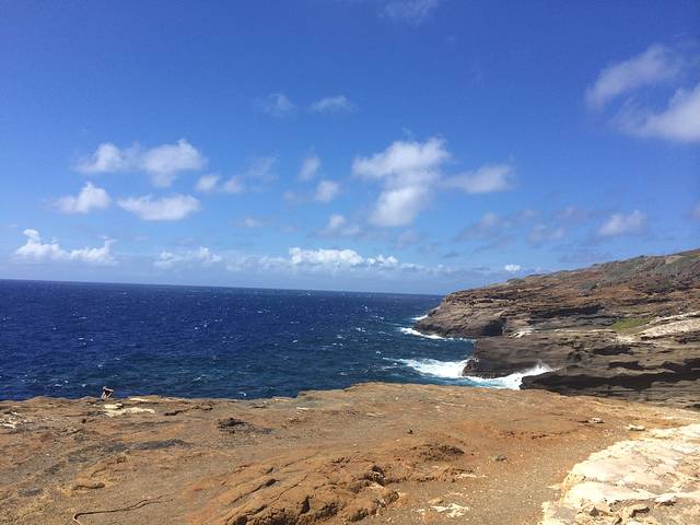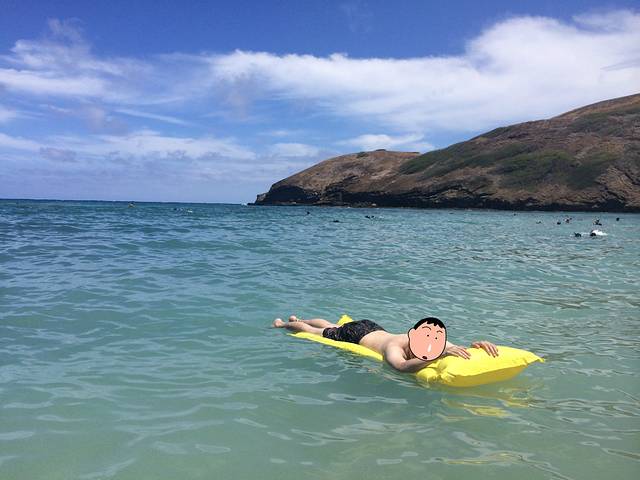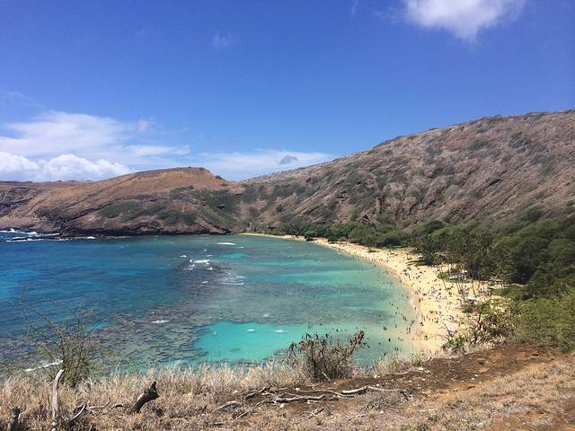 算是起的比较早的一天, 为了开车赶去有名的恐龙湾(Hanauma Bay) “Hanauma”就是弯曲的意思,正像是文字所描述的那样,这里是一个弯曲的海湾。