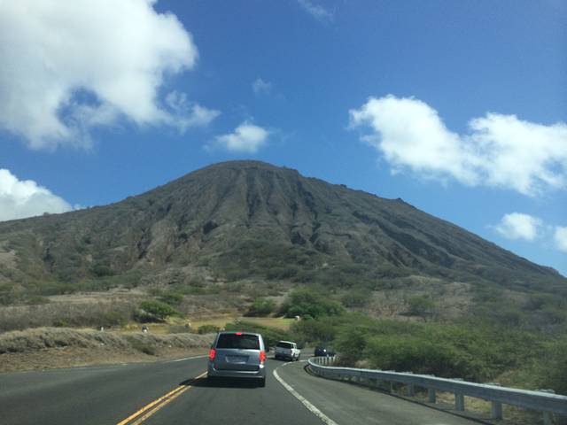 落地取了行李,就在机场外面坐租车公司enterprise的车去他们公司拿车。之前就已经听说,一些夏威夷的租车公司会坑游客的钱,我们是提早在expedia上预定了一部敞篷跑车,野马大黄蜂之类的。我们在网上预订的价格是400刀左右,但是到了他们公司,又要租导航又要买保险又要付油钱,弄到最后一共付了700刀!一共租4天。感觉有点坑,所以推荐大家不要在机场附近租车,在waikiki beach附近也有很多租车的地方,可能相对会比较便宜。