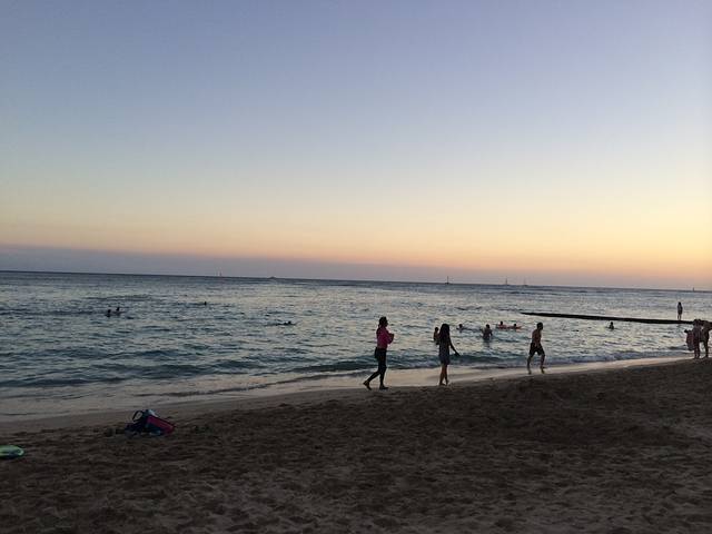 想当年第一次知道这个海滩还是在看樱桃小丸子的时候呢, 花轮同学给她带了一瓶wakiki海滩的白沙当做礼物~ 现在终于自己走在这个海滩上啦
