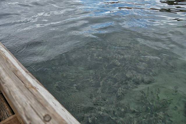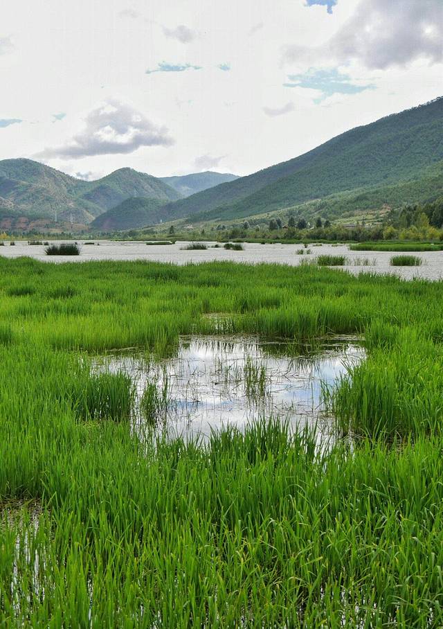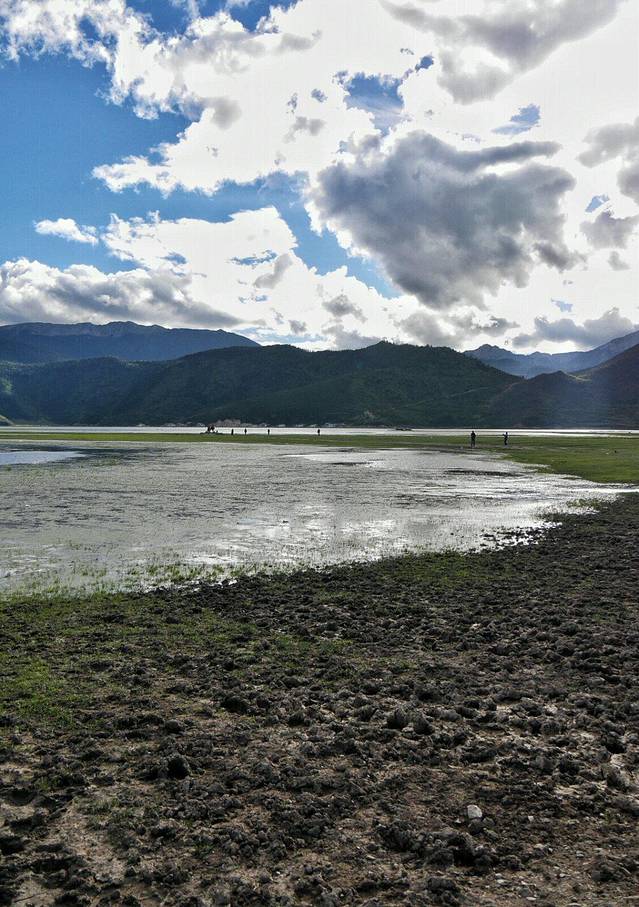和金沙江完全不同的清澈湖水,潜滩处水草尽现。