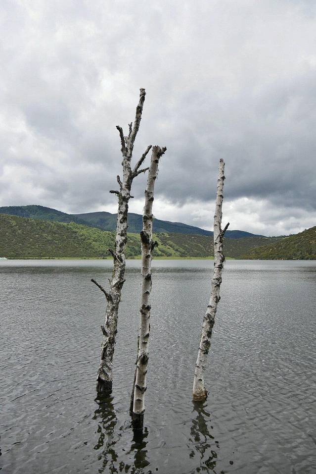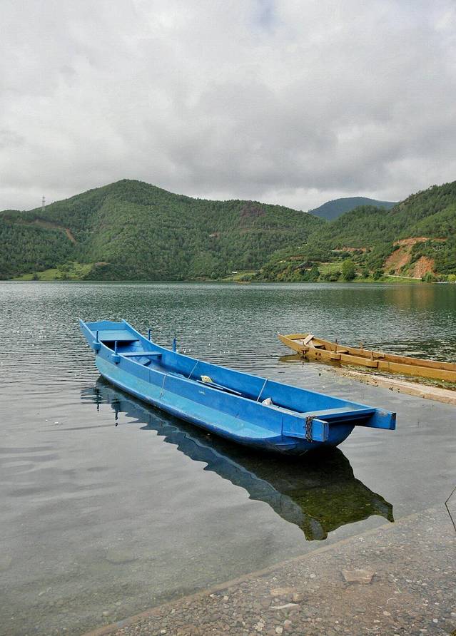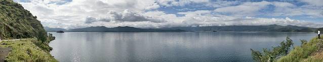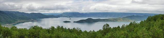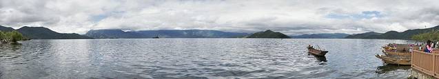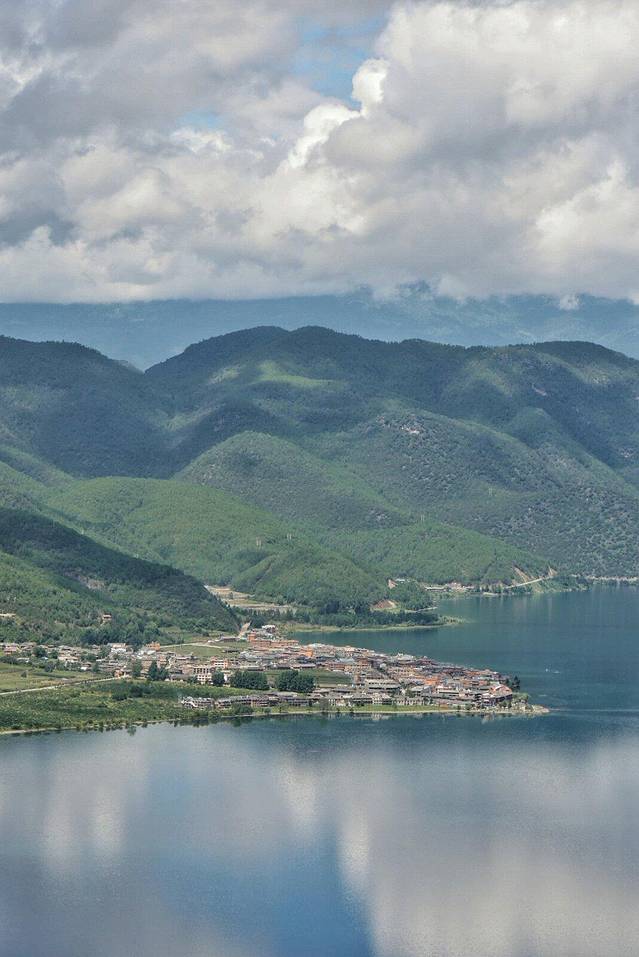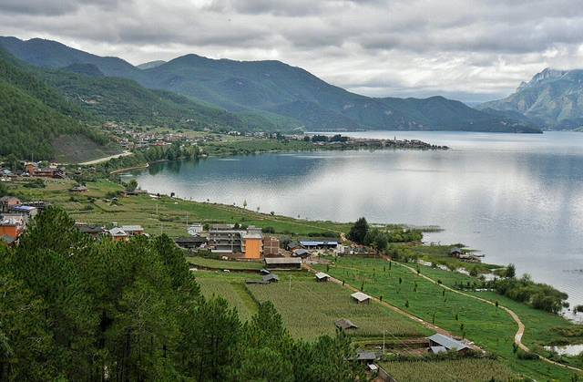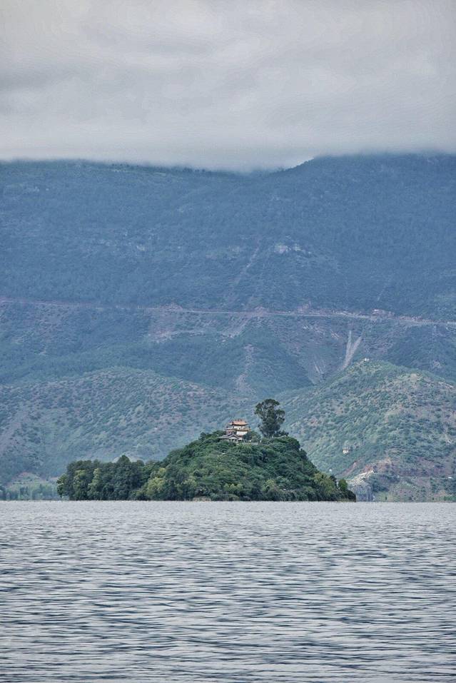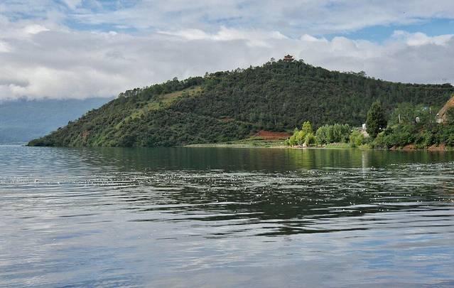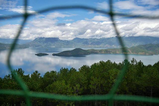 穿过公路旁的铁丝网初窥泸沽湖,形似伏击中的鳄鱼。