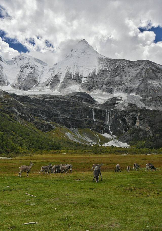 神山脚下的一片草场,大批的岩羊在这里觅食。从这里开始路就不好走了。