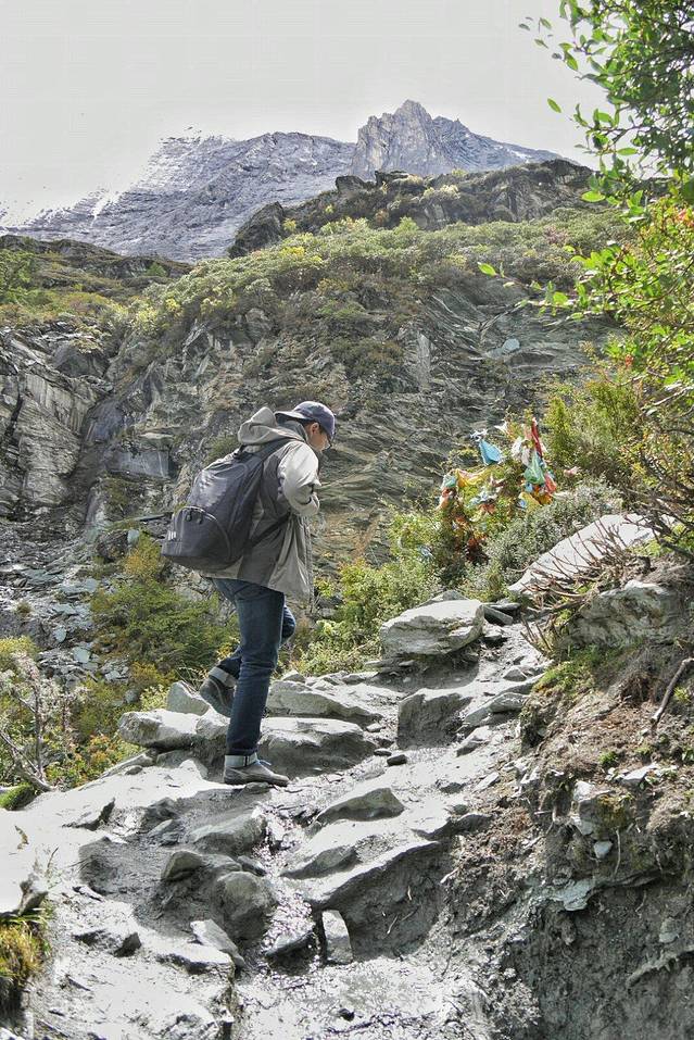 到达一定高度后寸草不生,但背风的裸露岩石间仍会有星星点点的生命迹象。