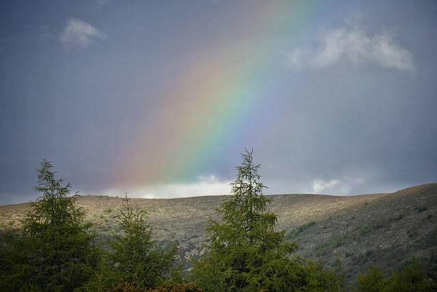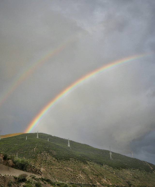 在亚丁的香格里拉镇见识到了双层彩虹,路上的人都惊得停下了车。外道彩虹的颜色排列和里侧的正相反。