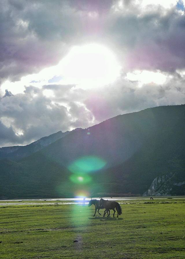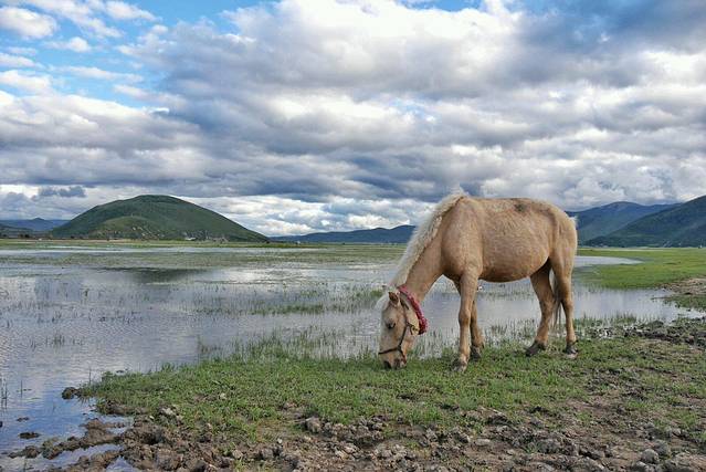 纳帕海加上依拉草原其实是一片很大的保护区,我们去了湿地公园部分,还没去到草原和湖区。骑马可以趟过湿地,时间充裕也可以绕行。接连几天在山谷里奔走,早已经有些透不过气,来到纳帕海一扫郁闷,这里非常适合城市病的人来放空,心无旁贷地在湿地间走上一段,吹着暖风晒晒太阳,从文稿和人际中抽离,偶尔走过藏民和马,一个照面就能放下郁结。所以净化心灵什么的听着矫情,多少是有被妖魔化了,"我来了我看到我感受",这些都是非常私人的东西,用上一万个净化心灵去形容终究也不过分。