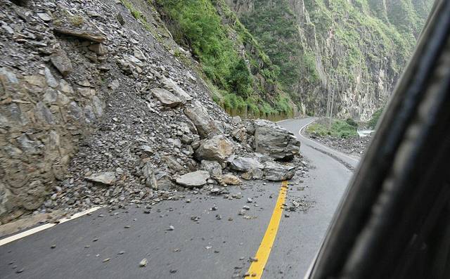 7个钟头后终于上了高速路,一路可见各种塌方。