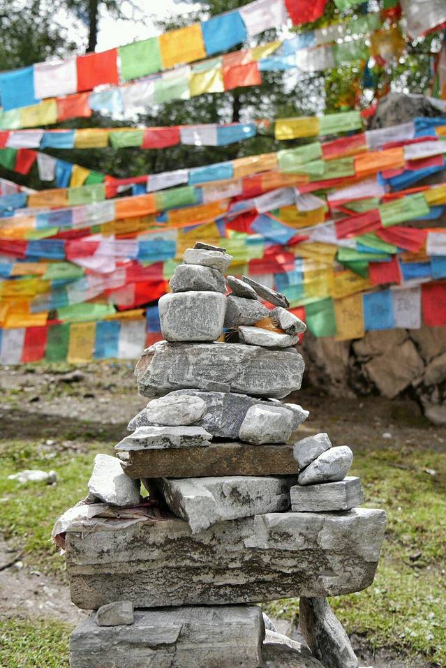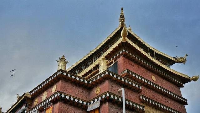 藏区的建筑多成梯形,配上花瓦飞檐,满眼异域风情。