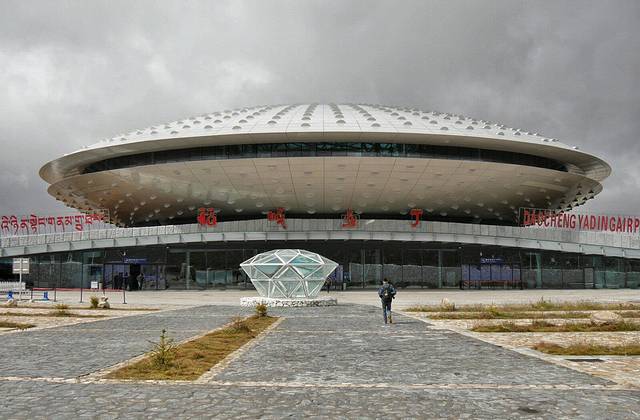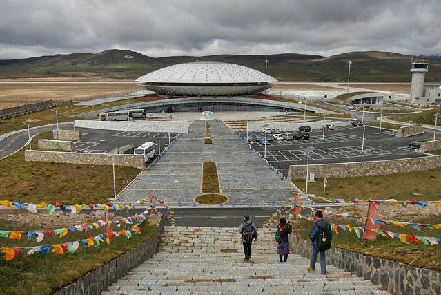 飞碟一样的稻城亚丁机场,世界最高机场。拉萨的只有3500米,都不够进前五。