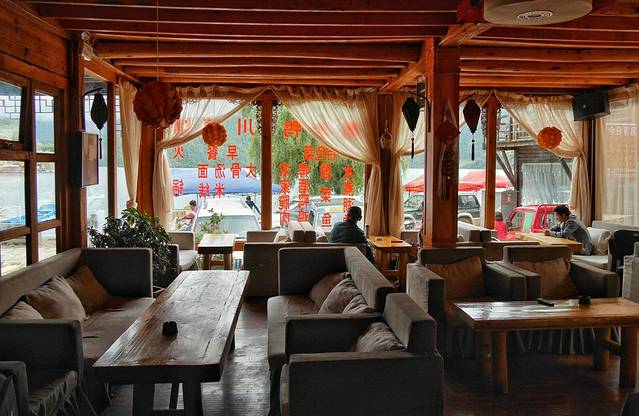 大落水再往北就是里格村,湖畔一堆客栈和餐厅,可以爬上山坡远眺,可以坐在咖啡厅发呆,的确是一处避世桃源。