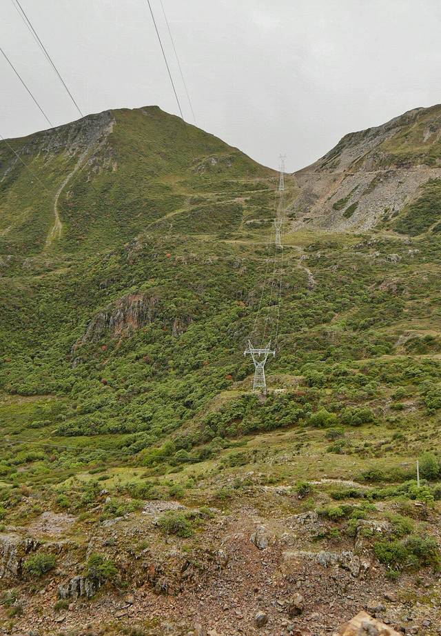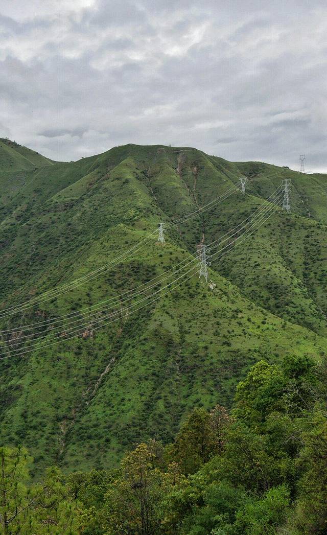 随处望一眼脚下便可明白在这深谷间架起电线塔的困难程度,这样的景象不管是村落还是山野一路蔓延。