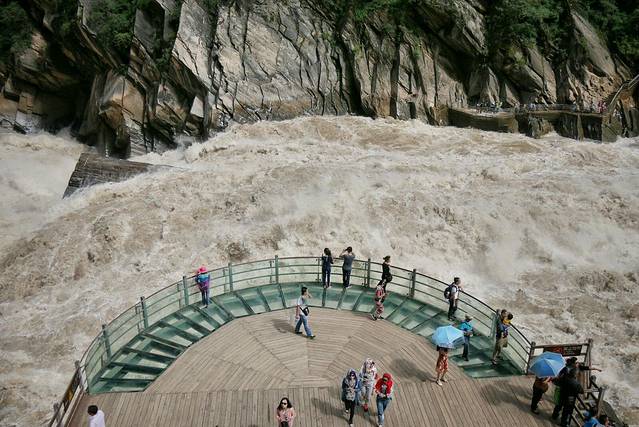 临到虎跳峡同行的叉叉君的肚子止不住的不适,一下一上的楼梯变得很是折腾,可是水声都听见了咬咬牙还是走了下来。旅游其实很碰运气的,天气,时间安排,身体状况,与人的沟通,各方面都能成为阻碍,走出惯常环境意外成了日常,这时候应变和权衡决定了试练的结果,攻略再细致也抵不过变化之快。