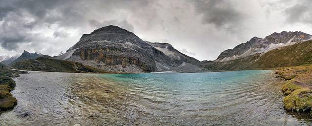 虽然光线不好,可碧蓝的湖水依然透出圣洁。