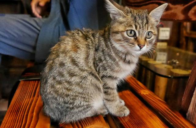 猫咪后腿残疾了,只得坐着卖萌。希望主人不只是把它当乞讨工具。