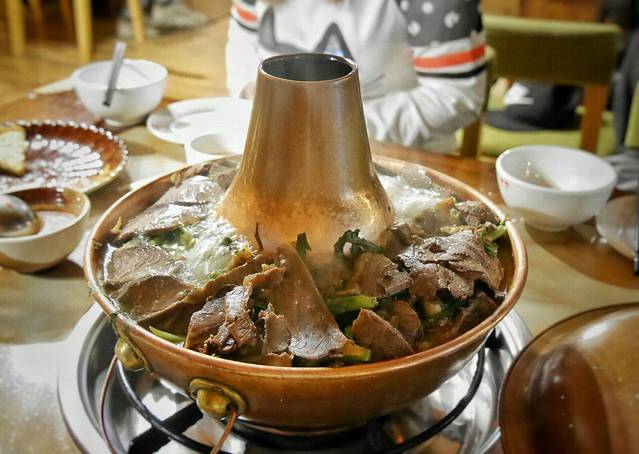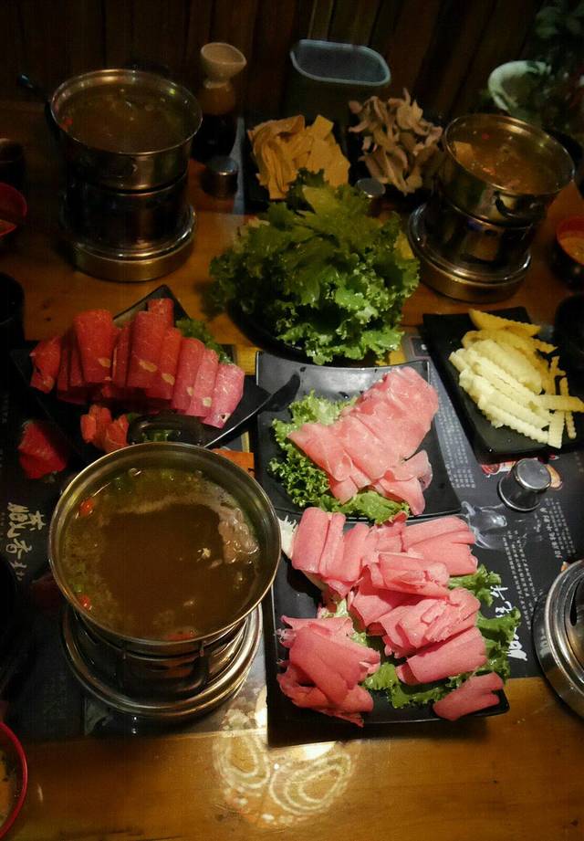 古城里的热门火锅餐厅,围绕着中心铺满了排肉,风格走的是豪放派。吃饭花了199元。