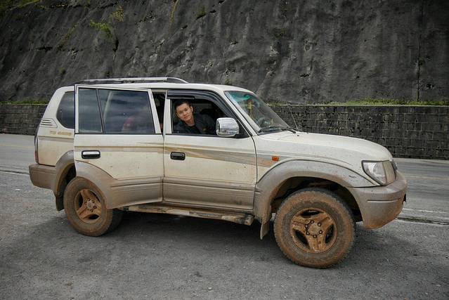加油站停留的时候师傅发现车子排气管+消音器坏了,声音隆隆作响,向我们征询意见是马上去修还是到了丽江再修。我倾向先去丽江再修理,这样可以不影响行程,但城区修理费可能对师傅来说不划算而且带着故障跑恐怕对车子有损耗,所以还是让师傅拿捏。最后找了村里人焊接修理,耗了两个小时,临近五点才开始往丽江赶。师傅不自觉地加重了油门,不管怎么说,安全依旧是第一诉求,应对这种意外终究没有两全的办法。当中的小插曲是太阳落山后山里可能因为阵雨路况变得泥泞,沿途很多小车轮胎陷进湿软的泥路根本不得脱身,饥寒交迫,所以这种翻山近路不太推荐。