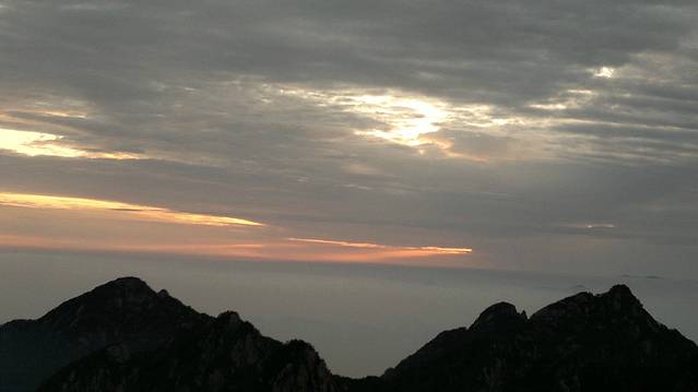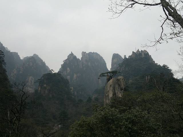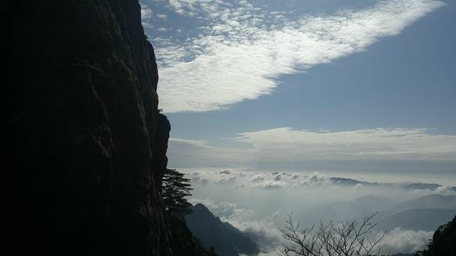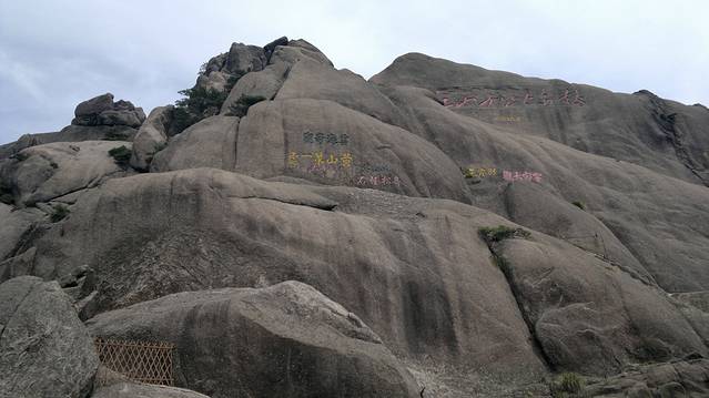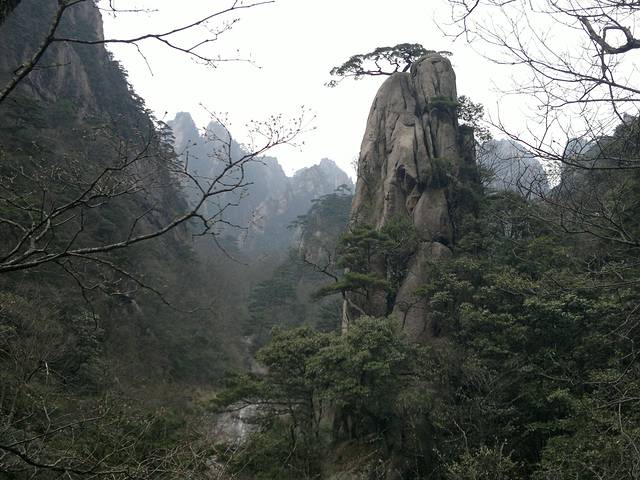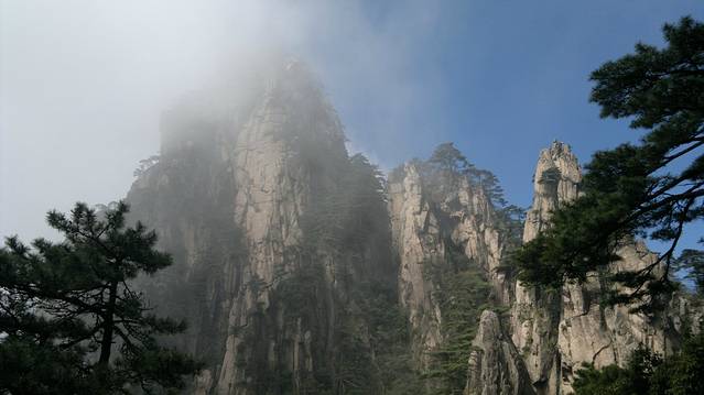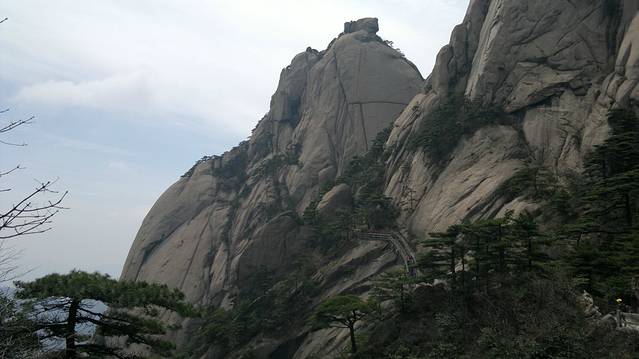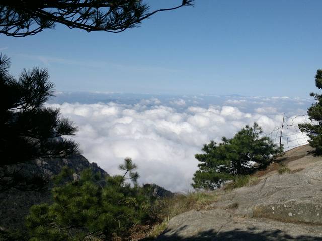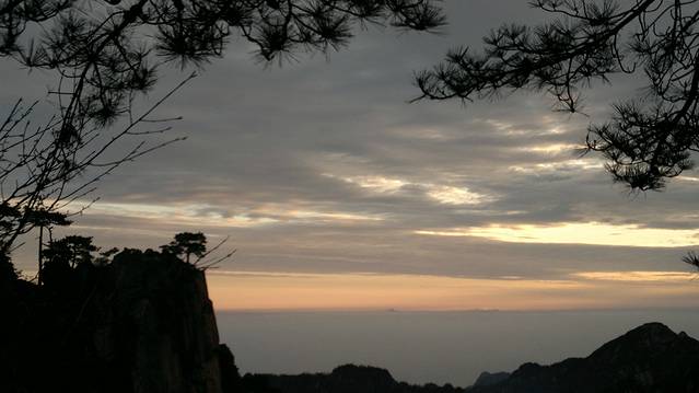 第五天,早上4点我们就起来了,准备好一切,在宾馆租了大衣,打着电筒开始到旁边的始信峰等着看日出。黑暗的山林小道中行走,不时偶尔还能看见远方穿梭出来的光束和听见某处山上传来的人声。发现,有很多比我们还早的人,基本上都是些职业摄影师,裹着大衣,调整着三角架上的相机,满怀期待的望着天空。跟着指示牌差不多半小时来到了始信峰,然后选了个风小视野足的地方窝着,双眼瞪着天空开始祈祷太阳的光顾。慢慢的人越来越多,天微微亮时,到处的山上都挤满了人,我的后路都被人赌完了。大多都是些涂着黑眼圈却努力想把眼睛撑成铜铃的失眠儿。慢慢的有鸟儿欢快的叫声传来,天空中的云也开始染上金黄,可惜害羞的太阳一直躲在云后,始终不肯出来,只用那微微散发出的光芒,逼使着我们继续满怀期盼。最终我们还是夙愿难成,只见识到它五彩华衣仪表下的滚滚云海。因为头天大雾什么都不能看我们浪费了几个小时,所以今天为了不遗憾,看完所有的大景点,我们就开始速奔。看完附近的猴子观海等小景点我们花了2小时来到气象观察点光明顶,然后又看了旁边的飞来石,的确很惊奇,完全没有科学定义的伫立在那风雨不倒。因为莲花峰没有开发,我们就没去,直接奔往西部大峡谷,大峡谷地势奇特,奇峰松树居多,全是下坡路,走走停停花了2个小时到达谷底,然后花80元坐缆车上去,如果你要重新走路上去的话,我估计你会奔溃,最少4小时的上坡路。然后我们前往黄山的招牌迎客松,这里人超级多,工作人员拉了障碍放人进去留影,1次放3人左右,后面的人排队。穿过迎客松下面的一线天我们就到达黄山之巅的天都峰。抬头一看,90度朝上的羊肠小道,仿佛登天一般。腿感觉有点软,手心也开始冒虚汗,但心里那丝征服的欲望却在蠢蠢欲动。于是我们手脚并用的开始登山,通过好几次的半路休息我们到达了山顶,站在一个平台上,能俯瞰到周围的一切,顿时自豪就萌发了。但看了来时的那条阶梯石道,说真的,你让我原路下去,我真的不怎么敢,一滑就是万丈深渊啊,信亏有另外一边的下山路。大吼了几声宣泄下心中的那丝畏惧。享受了片刻凌驾于云的那份缥缈,我们就开始往下爬,上面有告示,多雷区,别长期停留。估计有人在此渡雷成仙吧,好多大石都是中间被劈条缝。天都峰下面就是黄山的前山,我们没有选择索道,还是打算走路,花了2个多小时走到门票处,推荐还是坐索道下山好,看了前面的美景这前山的东西已经难入法眼,别浪费时间和体力。这时已经差不多4点,也就是说我们已经行走12小时了。我们没有选择坐区间车下山,也是走路,为了看黄色5A景区的那个大门匾,坐车的话就会错过。花了1小时我们就达到来时的黄山服务区车站,买好车票就回到了火车站坐大巴处。临时结伴4天的朋友也分开,我也准备好好休息下,准备接下来的南京行。