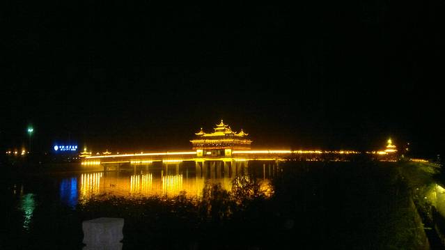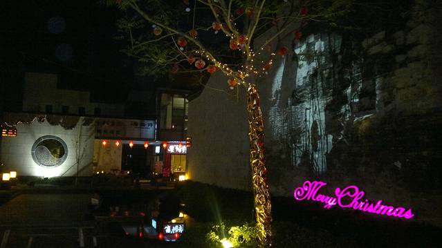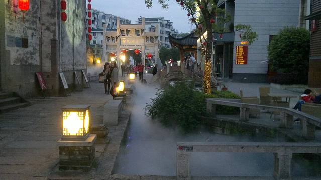 我们下午直接打车来到黄山最出名的屯溪老街,打车7元钱。一条街基本全是徽派二层楼式的店铺,青瓦白墙显得非常古朴。游客特别多,我们跟着长流慢慢逛。其中芡实糕,毛豆腐,黄山馅饼围着的人最多,都很便宜不超过10元钱就是一大包,2人都吃不完。芡实糕有很多种口味,吃起像年糕一样软软的,有种谈谈的木草甜味,含在嘴里慢慢化,满嘴清香。其他2种吃了感觉没什么特别,毛豆腐胃不好的就不要尝试,反正我是拉肚子了。街道两边大多都是各种琳琅满目的旅游纪念品店比较多,唯有那种大型的雕刻歙砚绝对会让你停脚观望,黑色光滑,有龙有凤,都显得栩栩如生,但好看壮观的都非常贵。街上还有好几个博物馆,个别是私人的进去要收门票钱。逛完老街千万别走,问问路人,就在其中1个出口出去,走过1座小石桥,就是新建的水街(青旅阿姨告诉我叫水街,我看上面写的黎阳老街)。站在石桥上能看到对面一座金碧辉煌的大桥,就像一条盘旋在河上的金龙,炫目多彩,吸引住周围所有的目光。水街是沿着一条水道修建布置的新型商业街,但夹杂着古徽风格,韵味十足。这时已经天黑,到处都是灯火辉煌,水街四处都有些古人物风景的投影印在墙瓦上,路边一些水拱桥处不时喷出浓浓白雾,仿佛置身于古代的海市蜃楼当中。