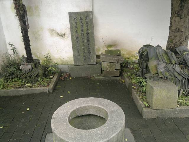 一个医学博物馆里面后院的水井和碑
