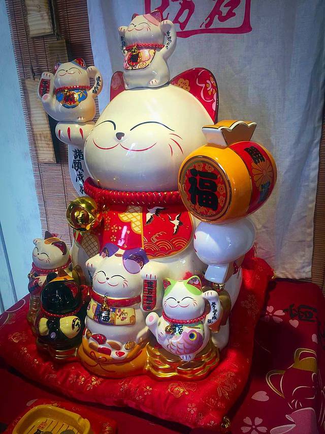 在啊柑姨芋圆店对面的转卖招财猫的小萌店(具体名字不记得啦)买了只小萌猫,暴照一张
