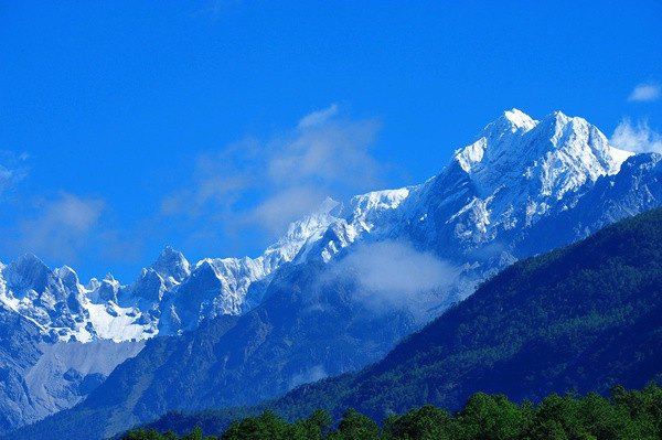 丽江古城背面的玉龙雪山虽然巍峨耸立,但几乎无雪,看来去香格里拉欣赏梅里雪山才是明智的选择。