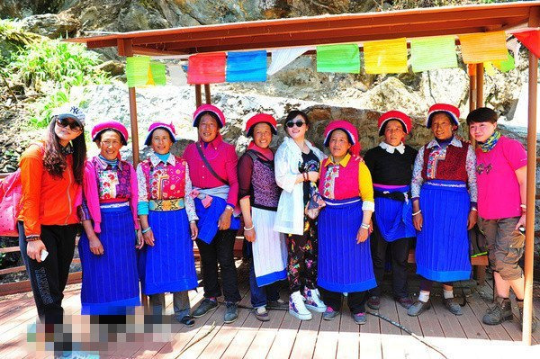 今年(2015年)是梅里雪山的本命年,所以经常可以遇到前来朝圣的藏族人,她们鲜艳的藏族服饰在原始森林中也是一道流动的风景。