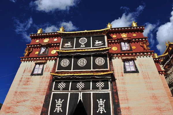 这是扎仓大殿最高处的金顶,在蓝天下金光闪耀、耀眼无比。