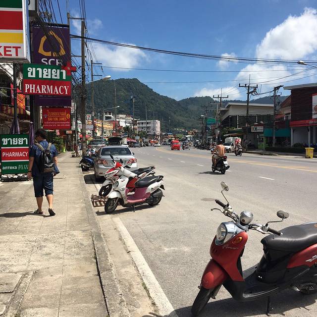在我们住的旁边就有一个租车的地方,250泰铢一天,我怎么砍价都不便宜,真心没办法,就把车给租了,然后我们就骑着小摩托上路,中午是在江西冷购物中心一层那里吃的,他家饭真心不错,所以在走的时候拍了张照片!