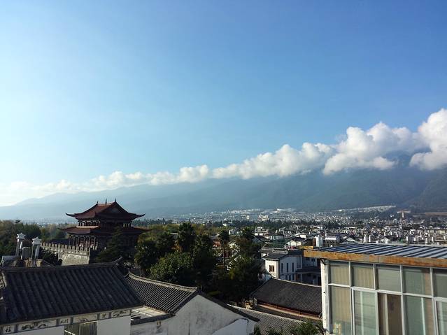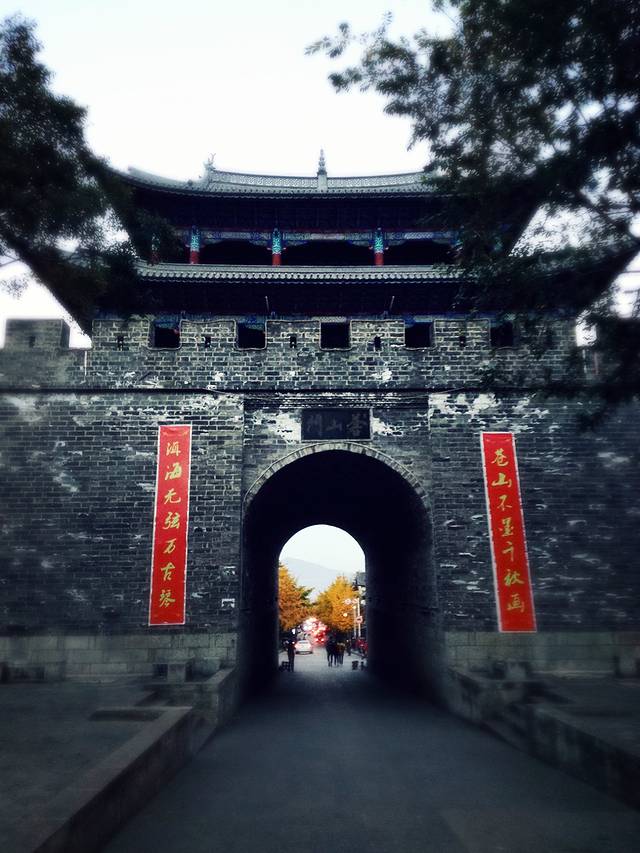 由于网络原因,之前写的未保存,真是恼火。不过还是耐下心来,继续写游记,自己答应过朋友的事,一定要完成。 坐上丽江-下关的大巴,预计3个多小时到达古城。12月份的丽江并不冷,天高云淡,道路两旁的景色像极了北京的秋天,红黄相间,非常美丽,不自觉萌生了自驾游的想法,以后若是万事俱备,那一定要来一次畅快淋漓的自驾游。心中如是想着,脸上却是被窗外强烈的阳光晒得红了起来,拉上半透的窗帘,听一首彩云之南,渐渐和荣荣睡得不省人事。 约下午四点钟,到达大理古城附近,因提前跟司机打了招呼,师父开到离洱海门最近的古城附近将我们放了下来。下车后本来是打车过去,结果黑车司机还不带我们过去,说是太近,走着就能到。结果我和荣荣在灰尘和暴晒中走了将近二十分钟才到洱海门。洱海门是古城的东门,我们网上预订的客栈就在洱海门对面。到了以后依然是客栈老板出来接的,老板人很好,听说我们喜明亮,特地给我们预留了一个带落地窗的大房间。看到房间满意后,我和荣荣稍事休整,就出发去古城转悠了。人常说,大理米线,大理米线,到了大理,肯定是要尝下大理的米线的。听各位网友的建议,去了让米线飞。点了这家店有名的五彩缤纷火锅米线,便和荣荣大吃起来。若是让我品评下大理米线,说真心话,我和荣荣一直觉得还是咱北方的好吃,兴许是适应了北方的味道吧。临走前,还遇到了一位韩国欧巴,看欧巴驻足店外良久,想必也是听了各位网友的指点吧。更好玩的是,欧巴虽是不会说中文,却认得汉字,从菜单上点了自己喜欢的米线,居然先拍照发到朋友圈,然后才动筷开吃。以此可见,国际友人和咱们也是一样滴,O(∩_∩)O哈哈~