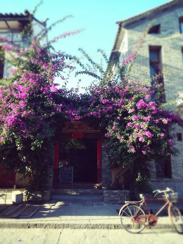 睡了个好觉,阳光明媚,我和荣荣租了两辆自行车,准备开始环湖骑行。我们是在东玉路与洱路交叉口租的车,20元一天,晚上八点前还车。老板很好,会告诉你骑行路线,如果还是害怕找不到路,可以买一张地图,这家店地图8元一张。其实洱海很好找,笼统点说就是跟着大部队就行了,一路都是有路标的。从洱路出发出古城,一路向北沿着大丽路靠右骑行,不到十分钟就会看到指向才村码头的路标。向右一直骑行然后有个岔路口,向左拐,再跟着部队慢慢骑就会到达洱海。岔路口有很多卖太阳镜、遮阳帽的,很好找。出发的时候,老板说从古城到才村码头约14公里,对于我们两个路痴来讲,也没什么概念,就边骑边玩了。天高云淡,清风凉爽,只是看着这样的天气就觉得心情超好。我们骑到梅溪(地图上才村码头在桃溪附近,桃溪-隐仙溪-双鸳溪-梅溪)是下午一点半左右了,鉴于还打算去三塔寺,于是问了附近村民,开始返程。回来的时候穿过一个村子,在这里吃了村民做的洱丝,才发现是荣荣在丽江吃的蒙自米线,黏黏的不太好吃,随便吃了两口算是对付了肚子。 从去才村码头的那条路出来右转,就是回到大丽路继续北行,约十分钟有条左转的路,就是市坪街,三塔寺就在市坪街的尽头。三塔寺很高,在很远的地方就可以看到,所以基本上很快我们就到了。三塔崇圣寺门票骆驼券是121元,18:00闭园,我和荣荣晒得够呛,体力消耗也不小,商量下就没进去,只是在外面拍了些照片。虽说没进去,但如果时间精力充沛的情况下,觉得三塔寺还是值得一去的。 一路再骑行回客栈,路已经很熟了,到古城客栈是下午四点钟,在破酥粑粑店买了老板剩下的最后一个粑粑,我和荣荣回客栈又补了一桶泡面,才算是圆满了。