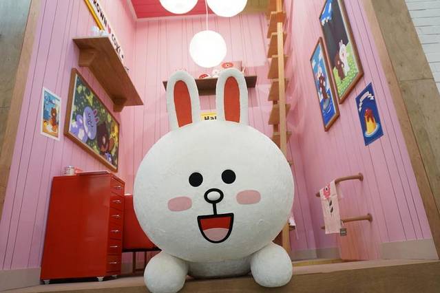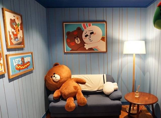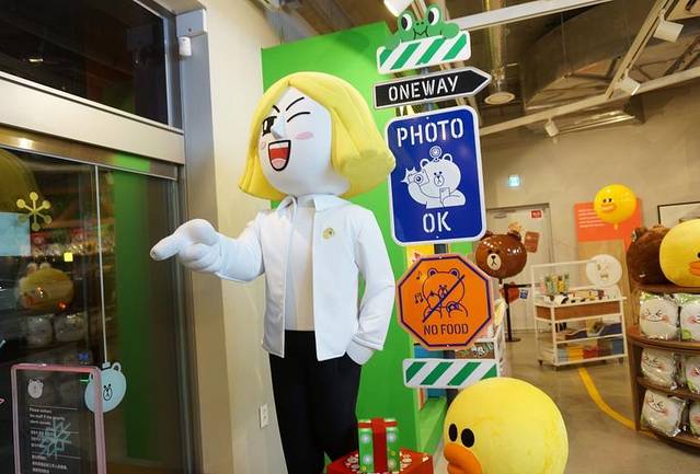 除了甜品。我们可以沿着这条路一直往前走就能看到一个很大的LINE旗舰店。大家都知道新沙洞也有一家,但你不知道梨泰院这家是首尔目前最大的一家LINE店,比起这个更吸引的人是梨泰院它们家咖啡厅的菜单!!!印着LINE的汉堡,香肠,和LINE的华夫!!来到这不吃简直是对不起自己