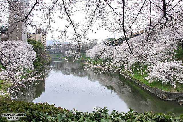 千鸟之渊其实就是皇居外苑附近的北之丸公园的一段护城河,该地区在2010年东渡的时候前往过,还是比较熟的。上午11点起床,乘坐电车从池袋出发,11点45抵达九段下。出了车站立刻就感受到人山人海——目力所及,河边全是樱花,于是本地群众全都利用周日来看樱花了。