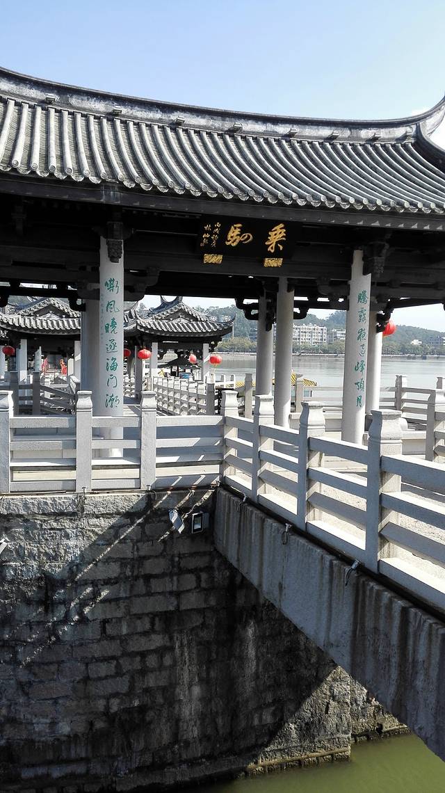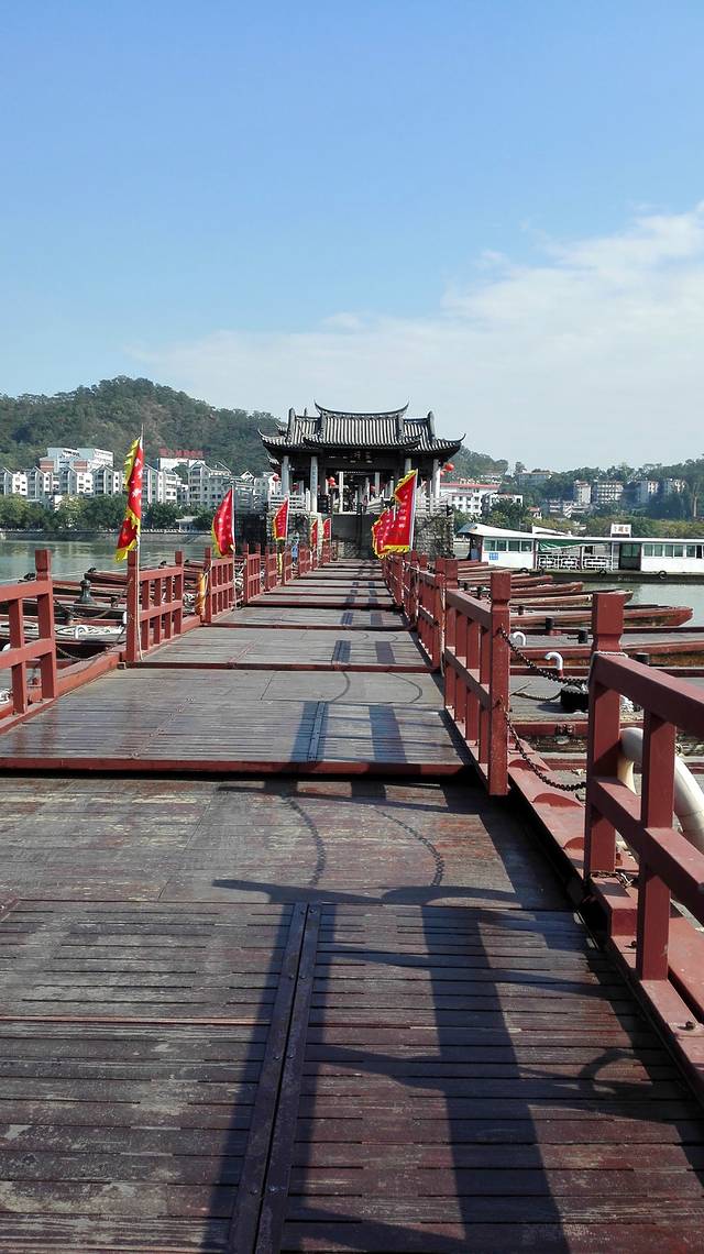 广济门正对着广济桥。这个是我们此行最重要的参观景点。门票50元,60岁老人凭身份证半价,导游证免费,要在售票口登记导游信息。可能是要收门票的原因,人不多。在桥上老妈又开启疯狂自拍模式。我就找个不晒的地方看江景。话说中间的浮桥在晚上真的会划走。白天我给老太太讲解广济桥的特色,她还有些不以为然。我们天黑了再去的时候,她惊叹浮桥真的不见了。这时候正好有一条运沙船从桥间穿过。真心赞叹古人的智慧。来潮州,一定要去逛一下广济桥。夜景很壮观。从广济桥正门逛到对岸是韩山师范学院。如果要逛韩文公祠,可以保留好门票,直接出去玩。回来的时候出示韩文公祠的门票和广济桥的门票,就可以直接从桥上走回对岸。如果不从桥上走,那是要绕很远很远的路。
