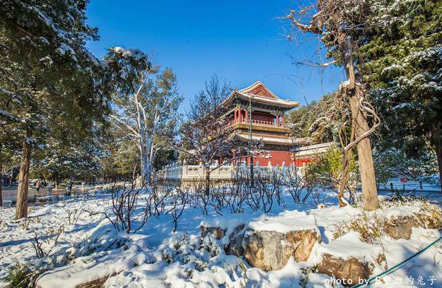 北京前两天下了一场大雪,让北京进入了银装素裹的世界。第二天天空忽然出现了久违的蓝天白云,让雪后的皇城显得异常美丽。兔子没有犹豫,拿着相机就奔向了北京的中心点--景山。如果想俯瞰北京雪景,景山有着得天独厚的优势,尤其从景山山顶俯瞰紫禁城,绝对有君王驾临的感觉。据报道,北京11月份只有35小时的阳光,而雪后出现了阳光灿烂的天气,让帝都的人们欣喜若狂,纷纷上街拍照,留下皇城难得的美丽雪景。