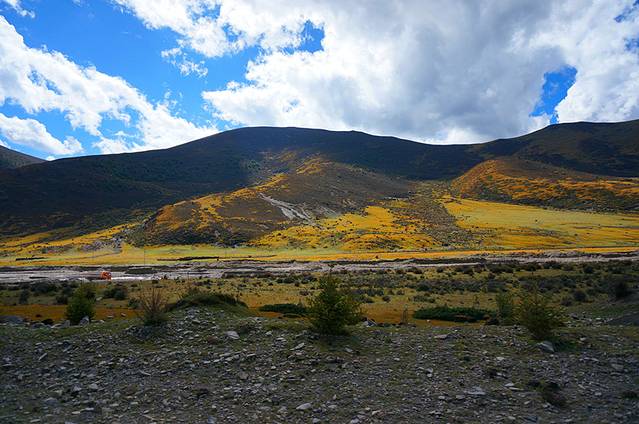 这一天的行程其实依然蛮折磨的,不停的在盘山,包括有40公里左右的烂路。新都桥也没到时候,叶子只有少部分黄了。