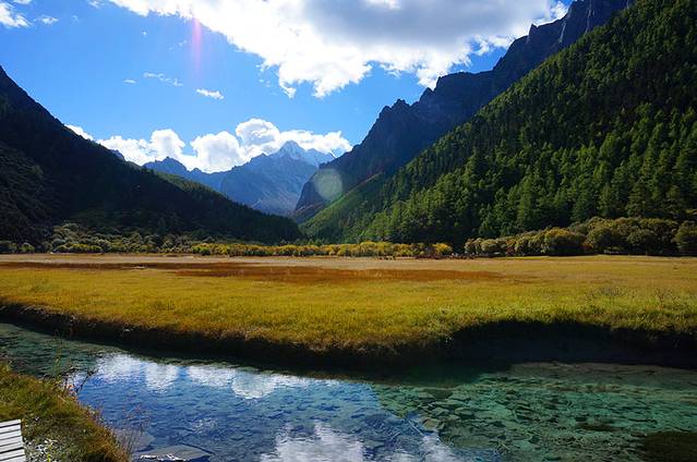 刚进入冲古草甸,有点九寨的感觉,但是雪山、草甸、池水搭配着更和谐,,反正玩了一天下来之后明显觉得九寨的门票太贵!!我是07年夏天去的,当时九寨沟是300元/人,黄龙是200元/人,现在只能更贵! 这里还是很厚道的 希望更多的小伙伴过来看看