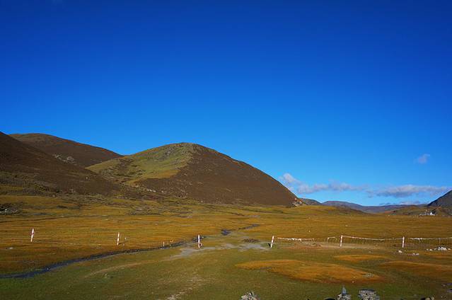 到达新都桥是下午三点左右,在一个重庆饭庄用完餐后领队介绍可以骑马上山坡看新都桥全景,骑这个马也算是为当地民众创收吧。很短一段路,收了50元/人,在山坡下面还要先收10元/人的垃圾清理费,风景一般般,安慰自己可能还是季节不对吧。 后来想想,感觉没扔点垃圾真对不起那20块钱。