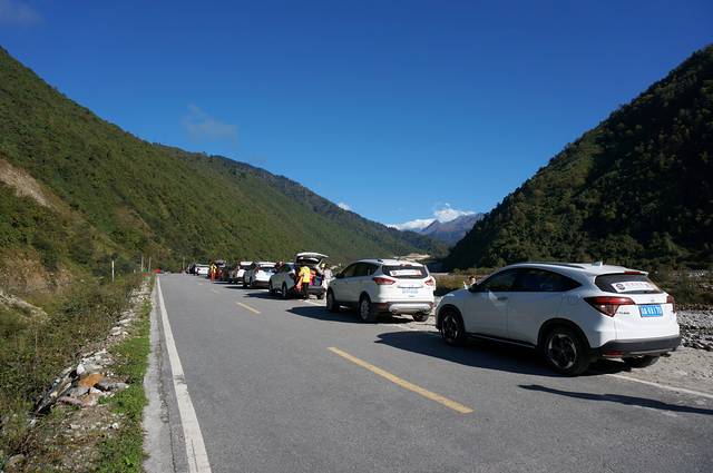 上图为18台车在翻越雅家梗前路边休息,也是全程很难得这么整齐的照片。