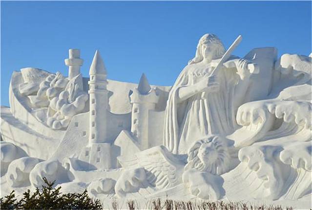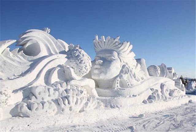 雪雕,是雕刻艺术的一种形式,最简单的雪雕,那就是推雪人啦,让我们看看海拉尔的雪雕,那叫一个逼真、精致--