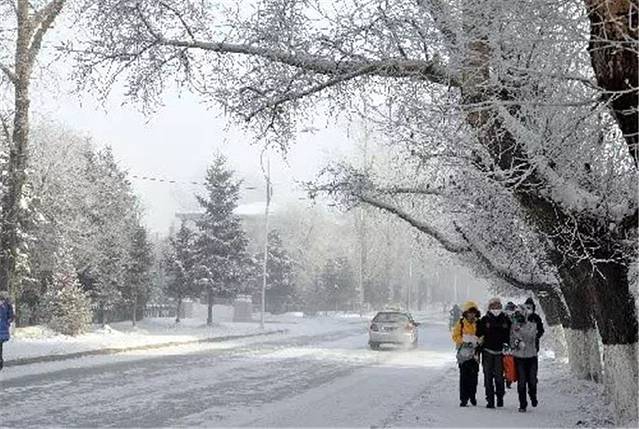 马路上像是铺了一层厚厚的地毯,踩上去发出“咯吱咯吱”的声音,留下一串深深地脚印-----