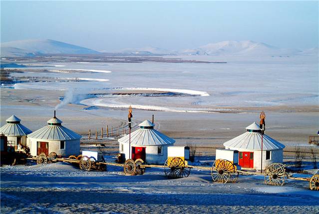 呼和诺尔披上了银装,远处的群山仿佛与天连在一起,让我迷醉----